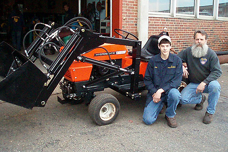 Jake went on to build and weld his front-end loader with the help of his dad. I asked Jake if he would like to bring in his tractor to school and share his welding project with his classmates and he agreed. Since Jakes dad arrived at the school with a flatbed trailer which was salvaged from a Connecticut scrap yard, it was not surprising to learn that Jake and his dad had picked up an old 1950s Hobart welding machine, which they plan to restore and use as their welding machine in their small home shop. There is no limit to what this team tackles: hydraulic systems, electrical wiring systems, and of course welding and fabricating. They are a dynamic team enjoying what they dospending time together, having fun together, and learning from each other one project at a time. My welding hat is off to this father and son team. Job well done!
