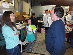 | It was true poetry in motion watching the students pitch in and work very hard in preparing, serving, and cleaning up after the meal for over 70 veterans. Plus their extra efforts in brightening up the shelter by cleaning the dining hall from stem to stern, as well as cleaning and brightening up the shelter's entrance lobby. The entire night, our students shared their friendly, cheerful smiles to make a veteran feel better while providing a warm meal on a cold night in New England. |