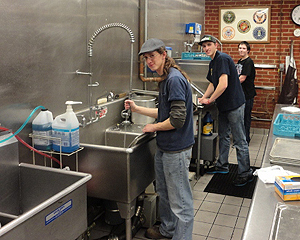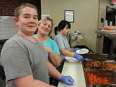 | It was true poetry in motion watching the students pitch in and work very hard in preparing, serving, and cleaning up after the meal for over 70 veterans. Plus their extra efforts in brightening up the shelter by cleaning the dining hall from stem to stern, as well as cleaning and brightening up the shelter's entrance lobby. The entire night, our students shared their friendly, cheerful smiles to make a veteran feel better while providing a warm meal on a cold night in New England. |